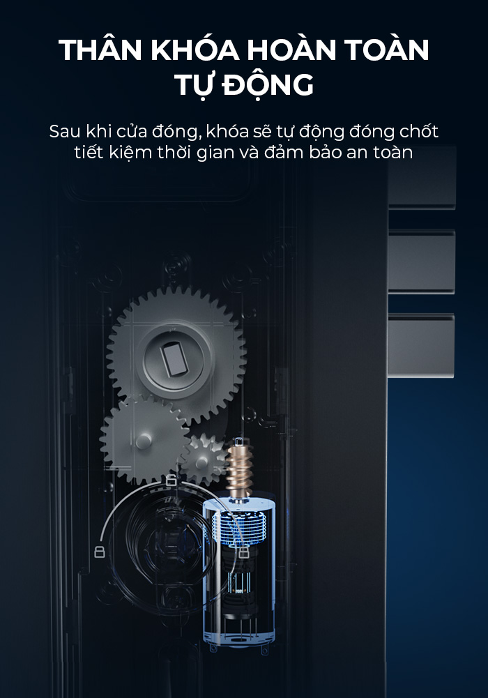 Khoá điện tử Kaadas Q9 FVP được trang bị cơ chế đóng/mở hoàn toàn tự động. Khi cửa đóng lại, khóa sẽ tự động cài chốt, giúp tiết kiệm thời gian và tăng cường an ninh.