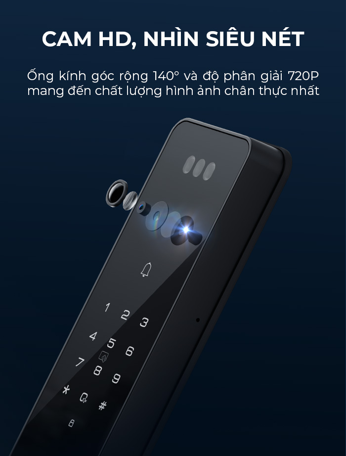 Một trong những tính năng nổi bật nhất của Kaadas Q9 FVP chính là camera góc rộng 140° tích hợp ngay trên thân khóa. Với độ phân giải HD 720P, hình ảnh ghi lại sắc nét và chân thực, giúp chủ nhà quan sát rõ ràng mọi hoạt động trước cửa. Camera kết hợp cùng màn hình LCD và tính năng gọi video trực tiếp qua app điện thoại, mang đến trải nghiệm giám sát – liên lạc – mở cửa từ xa vô cùng tiện lợi và hiện đại.