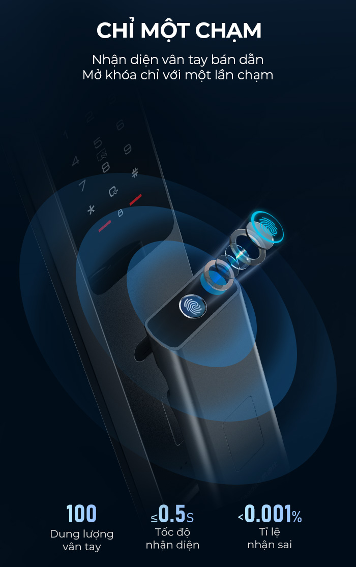 Sử dụng cảm biến FPC cao cấp – công nghệ vốn được ứng dụng trong hệ thống ngân hàng, Kaadas Q9 FVP đạt tỷ lệ chính xác 99,99%. Người dùng chỉ cần chạm nhẹ để mở cửa, đảm bảo vừa nhanh vừa an toàn.