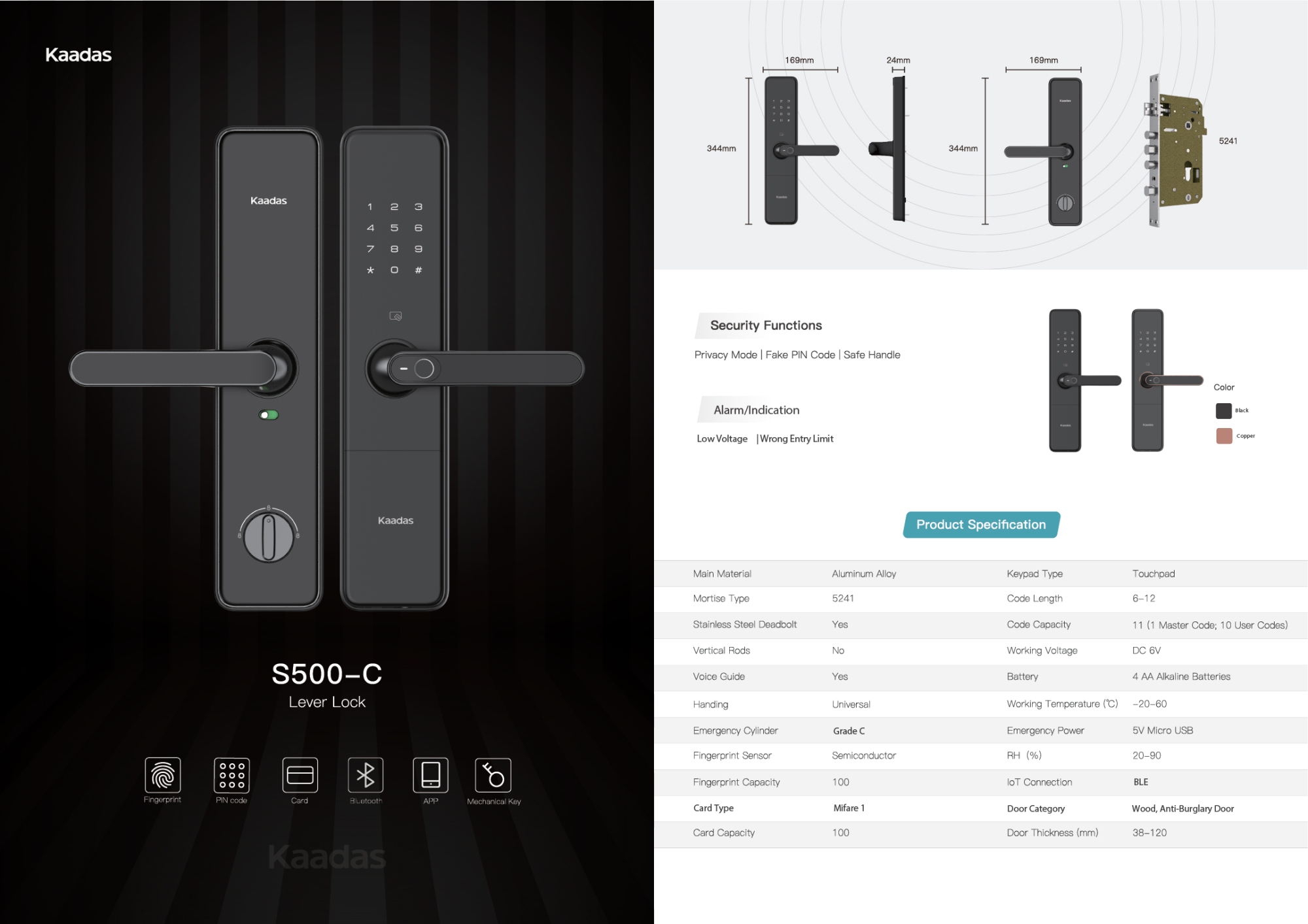 5. Bảng thông số kỹ thuật Kaadas S500 Series